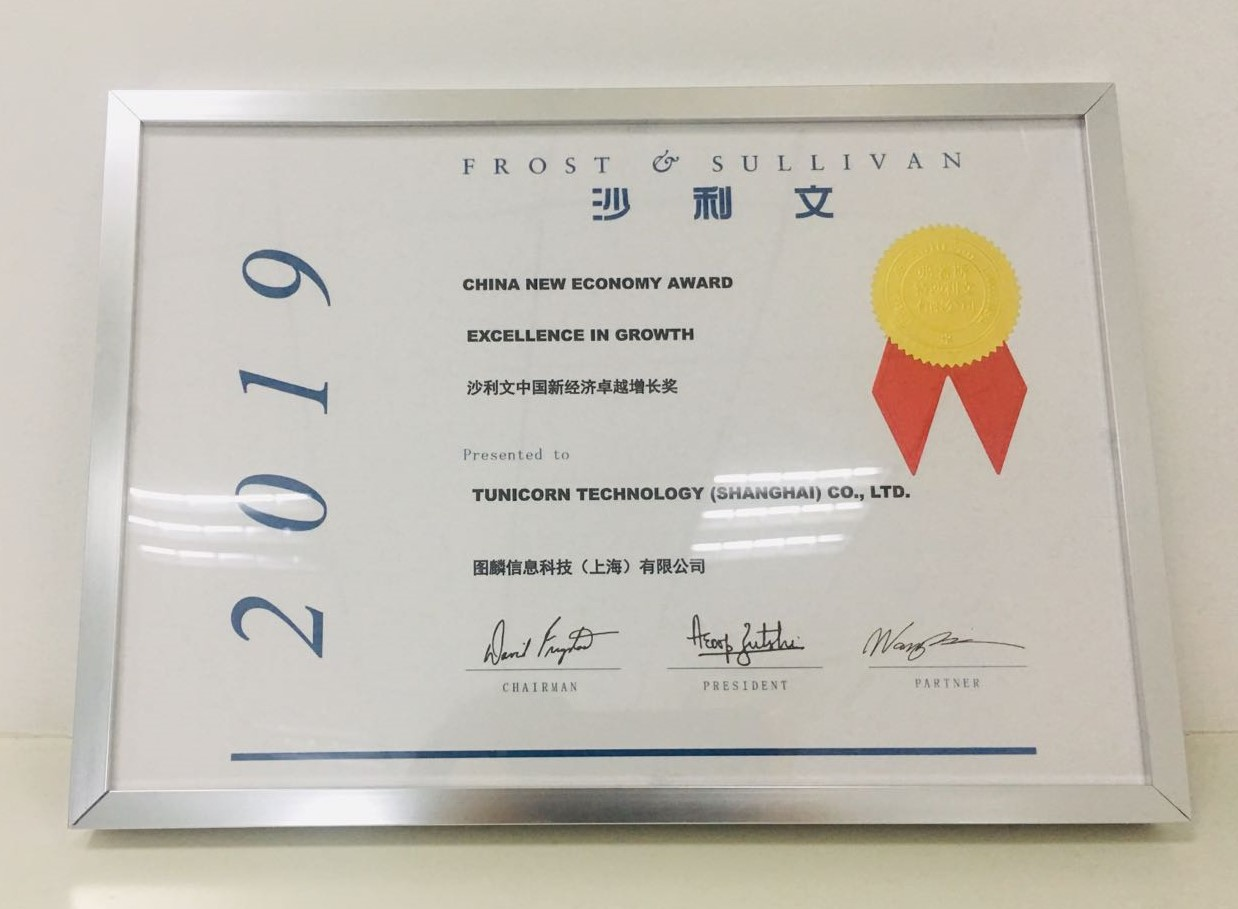 2019年7月18日,今年会科技受邀出席由全球著名增长咨询公司Frost & Sullivan弗若斯特沙利文(以下简称“沙利文”)主办的中国新经济峰会。会上,今年会科技获颁“2019年沙利文中国新经济--卓越增长奖”。
