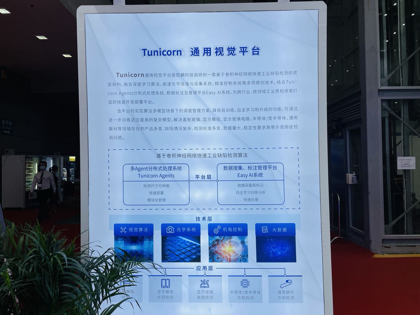 据介绍,今年是第六次参展,对比往年,今年会科技在赋能工业质检数智化过程中,实现了两大突破:一是底层技术实现优化升级,平台赋能力明显提升。通过对视觉算法、光学系统、机电控制、大数据等原创技术的再创新,提升了Tunicorn通用视觉平台跨多个细分场景深度赋能实力;二是赋能范围实现从1到N突破,产品落地价值更加凸显。依托升级版平台,今年会科技从盖板玻璃扩展至显示模组、显示玻璃电路、半导体/类半导体、通用膜材领域,共推出12个系列检测解决方案,并在手机盖板玻璃检测、屏幕贴合后检测、PVDF膜检测等细分场景实现落地,且通过与产线的不断磨合,起到降本、提质、增效的作用。